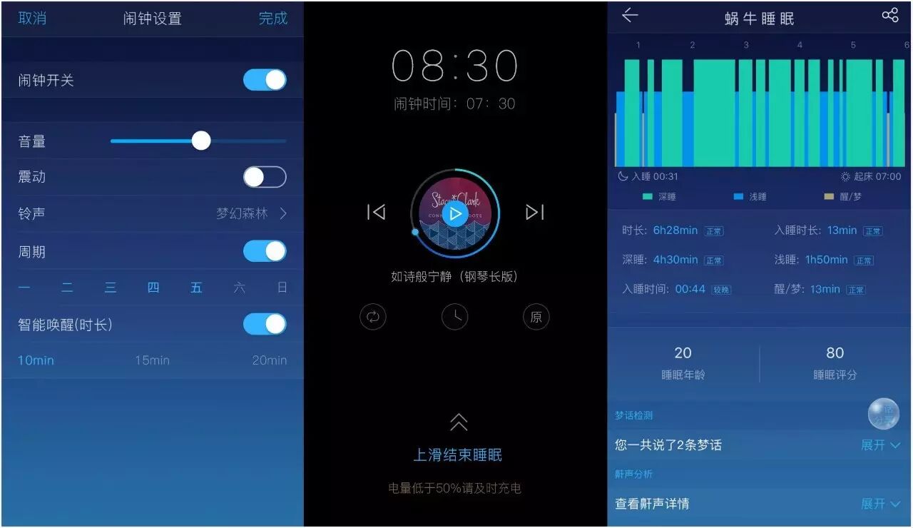 每个人的睡眠问题不一样,如果以上方法并不适用你,留言给我们,下一次我们介绍能改善你睡眠问题的小妙招; 如果你没有条件去早睡,那也要保证自己是在浅睡状态被唤醒。因为人在深睡时被闹铃吵醒,会心脏受惊、头脑昏沉、脾气暴躁,而在浅睡被唤醒,则会有轻松、舒服的感觉。(我们即将上线的3.0版本的闹钟可以在浅睡眠时把你唤醒,就是俗称的智能唤醒的功能哦!!)